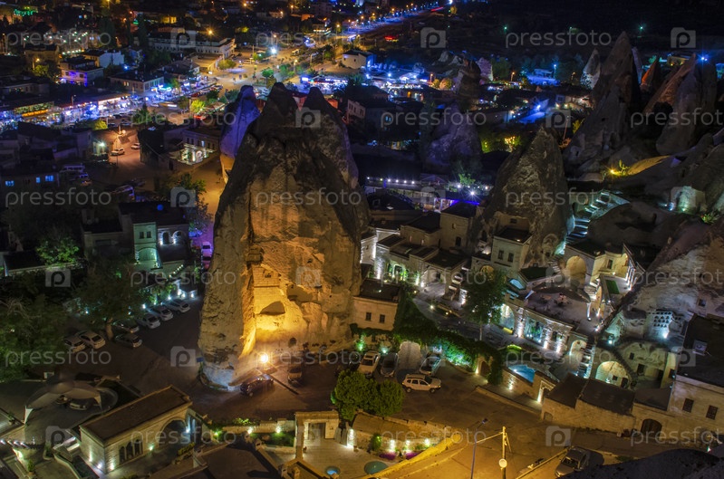 Деревня Гереме в Каппадокии ночью в Турции