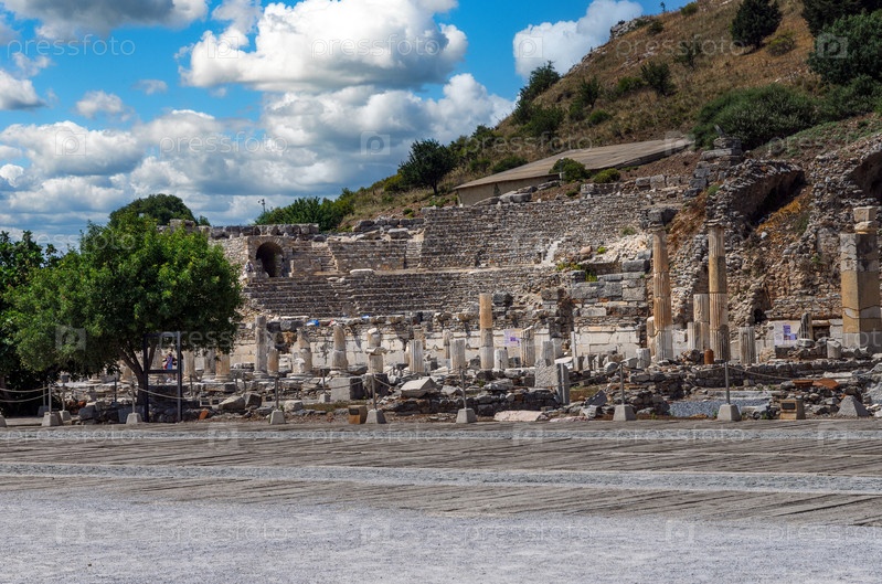 Руины древнегреческого города Эфес или Эфес на побережье Ионийского моря в Сельчуке, провинция Измир, Турция в летний день