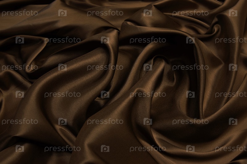 Подкладка шелковая коричневая. Крупный план линий в коричневой шелковой ткани. Коричневый фон с тенями и плавными линиями