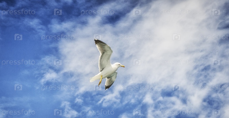 Чайки летают в небе над Афоном