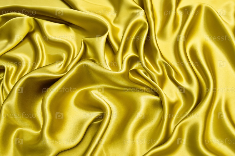 Ярко-желтый фон из шелковой или атласной ткани с волнами. Абстрактный узор для дизайна с копией пространства