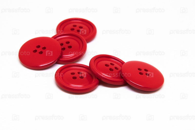 Красные пуговицы для одежды на белом фоне для концепции Дня пуговиц