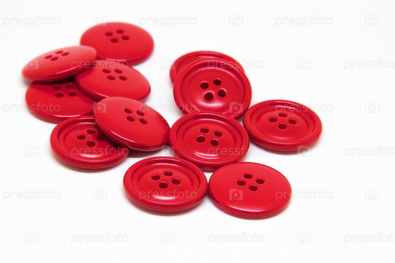 Красные пуговицы для одежды на белом фоне для концепции Дня пуговиц
