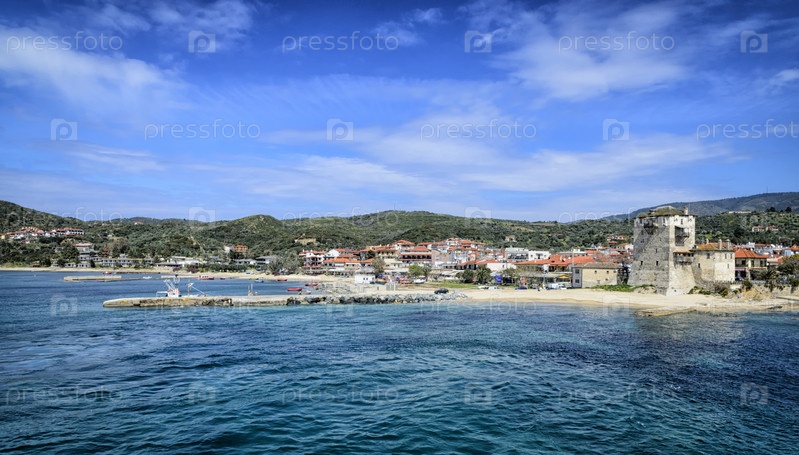 Древняя башня Урануполиса на полуострове Афон в Халкидиках, Греция