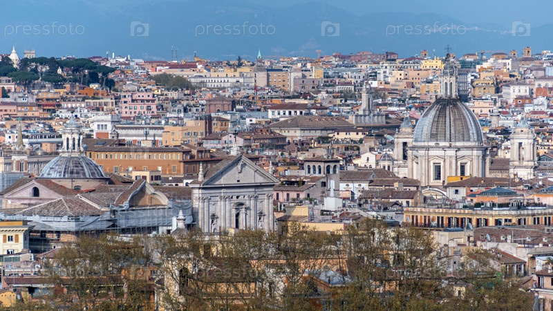 Рим (Италия) - Вид на город с холма Яникул и террасы, с Витториано, церковью Тринита-деи-Монти и дворцом Квиринале