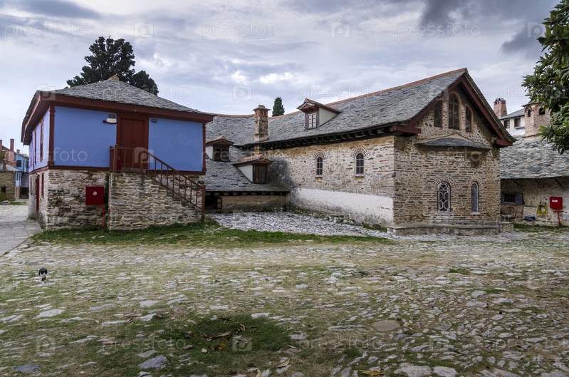 Внутри православного монастыря Великой Лавры на горе Афон, Агион Орос (Святая гора), Халкидики, Греция
