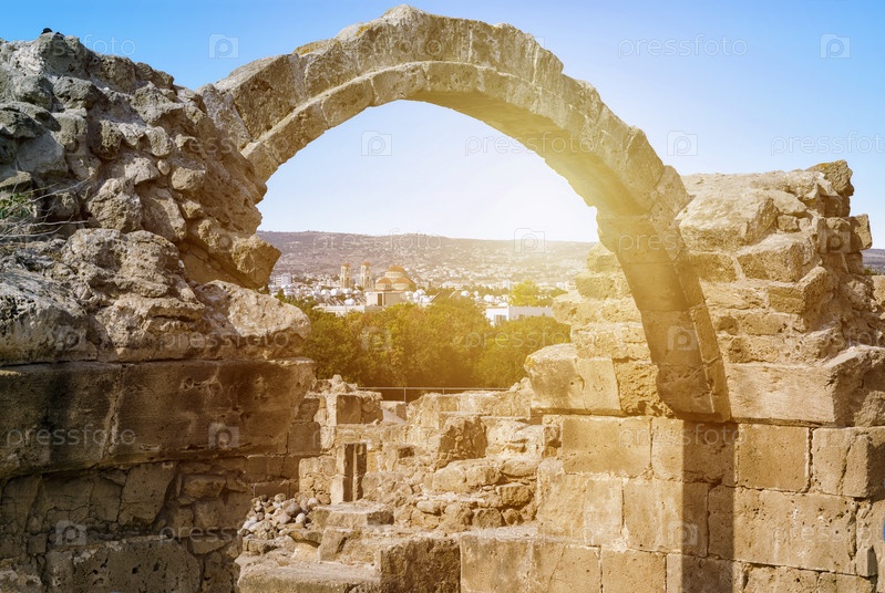 Фрагмент Саранда Колонес археологического парка Като Пафос, расположенного на юго-западе Кипра, недалеко от гавани Пафоса