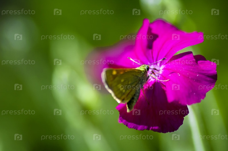 Маленькая бабочка на цветке диантуса