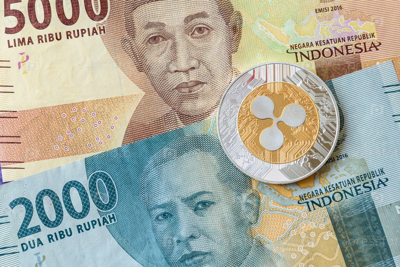 Пульсирующая монета с настоящей банкнотой индонезийской рупии. Бизнес и финансовая концепция
