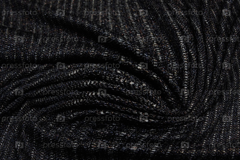 Крупный план плиссированной черной ткани с принтом из серебряной фольги. Материал текстиль и кожа