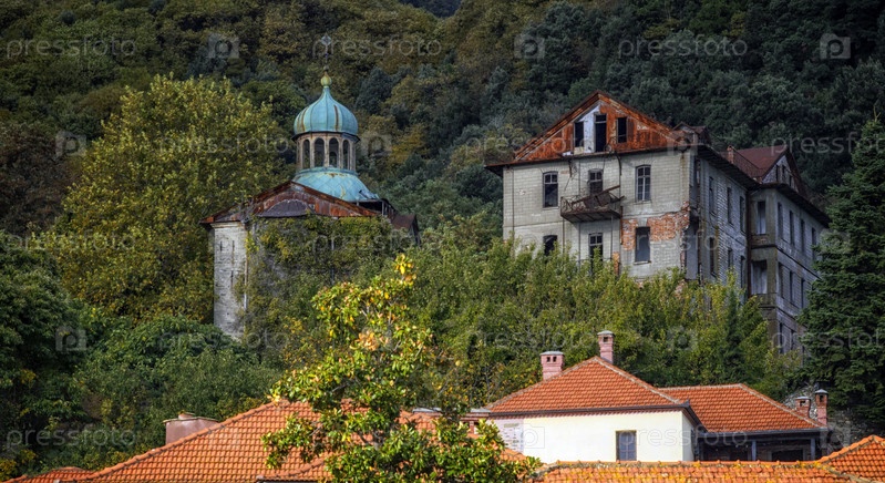 Старая заброшенная церковь над городом Кариес, гора Афон