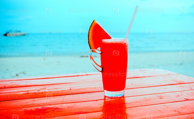 Свежий арбузный сок на тропическом пляже