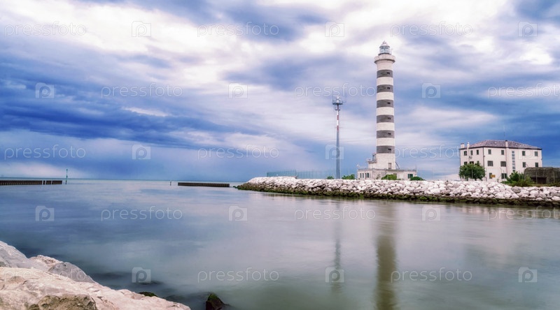 Маяк на пляже Лидо-ди-Езоло недалеко от Венеции, регион Венето, Италия
