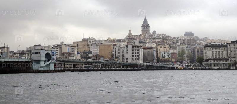 СТАМБУЛ, ТУРЦИЯ - 11 апреля: Вид на Галатский мост и Галатскую башню 11 апреля 2014 г
