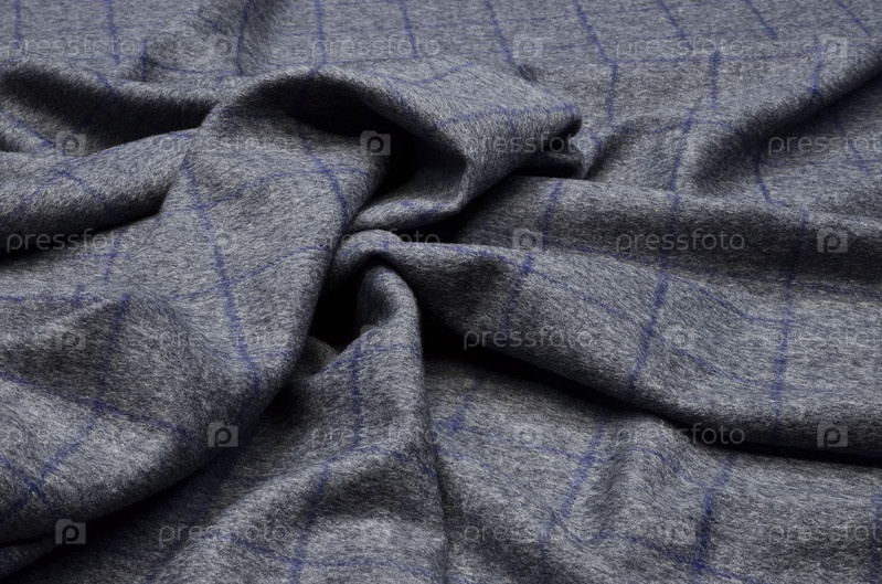 Ткань из шерсти и альпаки, синий чемодан на сером