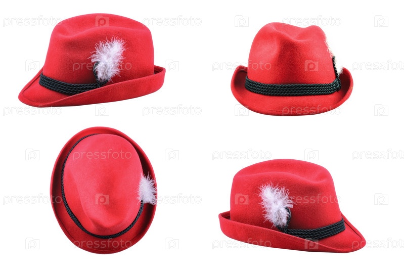 Красная тирольская шляпа на белом фоне