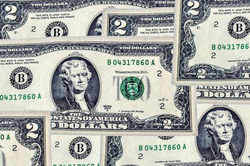 Образец из двух банкнот американского доллара. Финансовая концепция