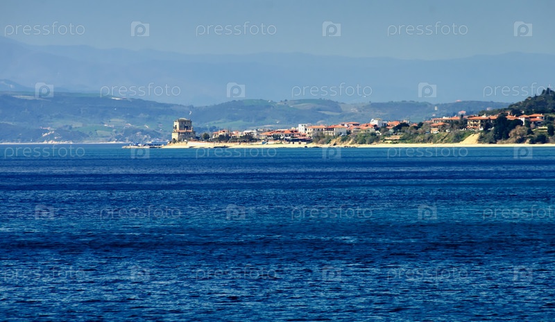 Исторический форт в порту и городе Урануполис, место входа в монастыри горы Афон, Халкидики, Греция