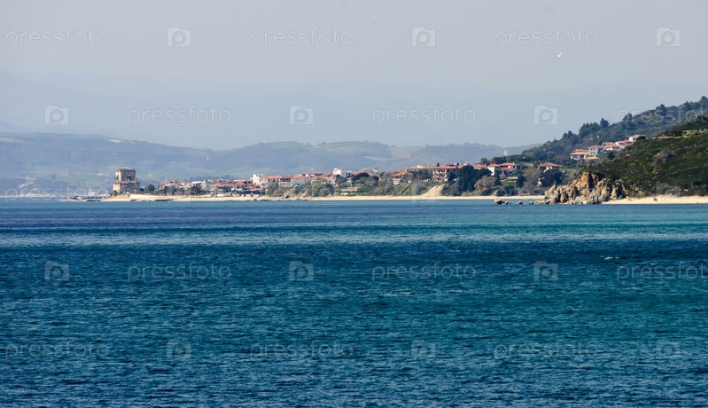 Исторический форт в порту и городе Урануполис, место входа в монастыри горы Афон, Халкидики, Греция