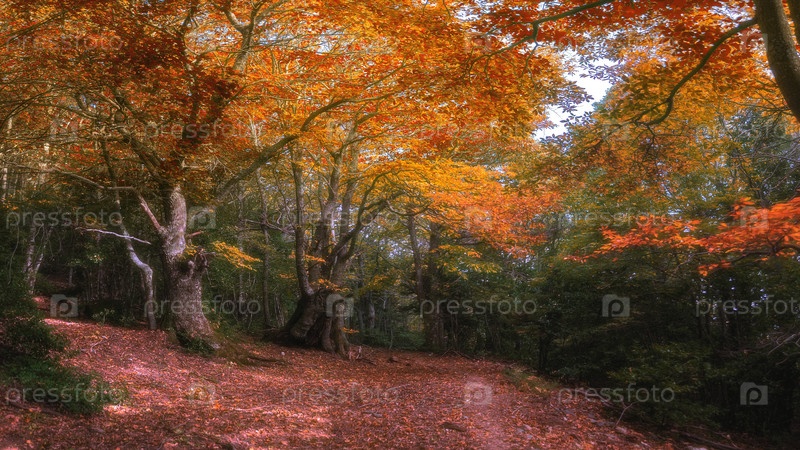 Дорога через золотой осенний лес в Европе