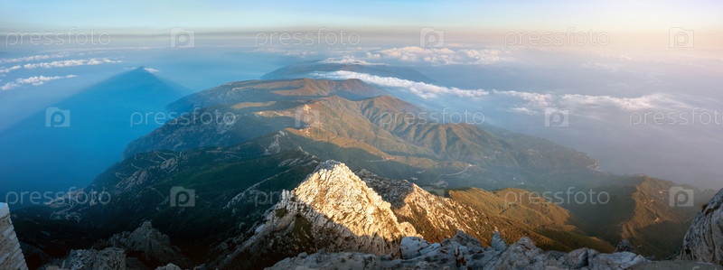 Вид с вершины Агион Орос (гора Афон) в Греции, Халкидики
