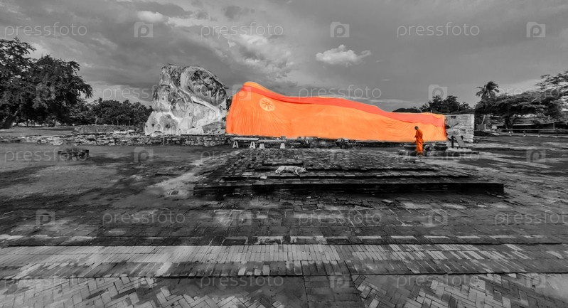 Большая каменная статуя Лежащего Будды в Аюттхая недалеко от Бангкока, Таиланд