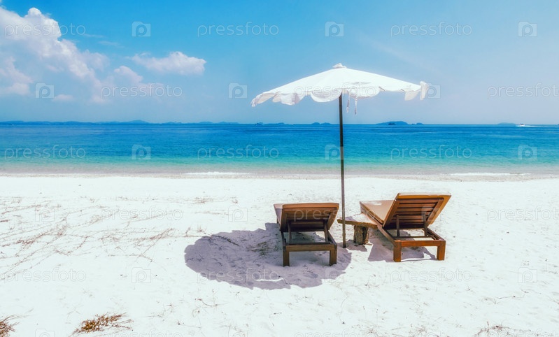 Морской пейзаж с двумя шезлонгами, без людей