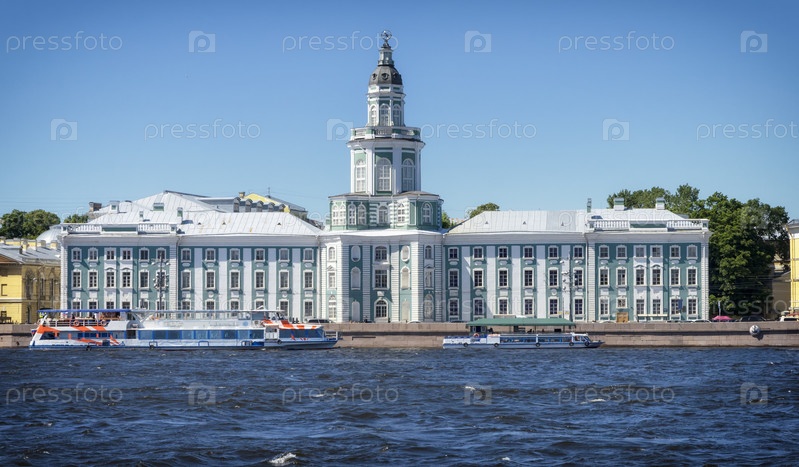 Фасад Кунсткамеры, выходящий на Зимний дворец на Неве, знаковая достопримечательность Санкт-Петербурга, Россия