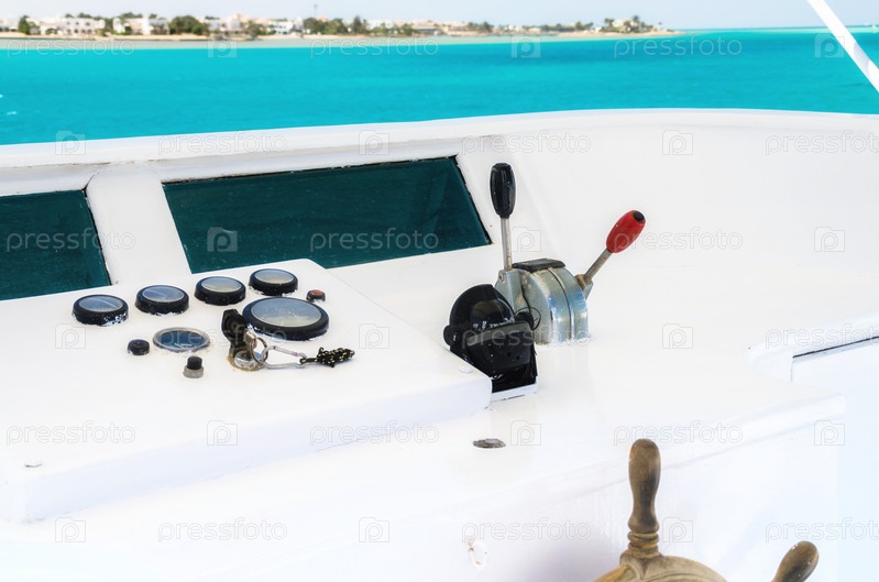 Рулевое колесо и другое оборудование на прогулочной яхте