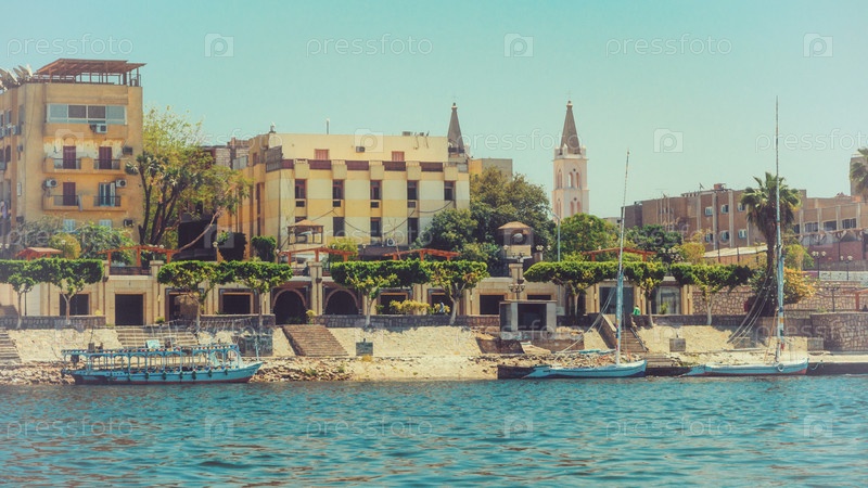 Луксор / Египет - 8 апреля 2015 г.: Туристический катер пересекает Нил