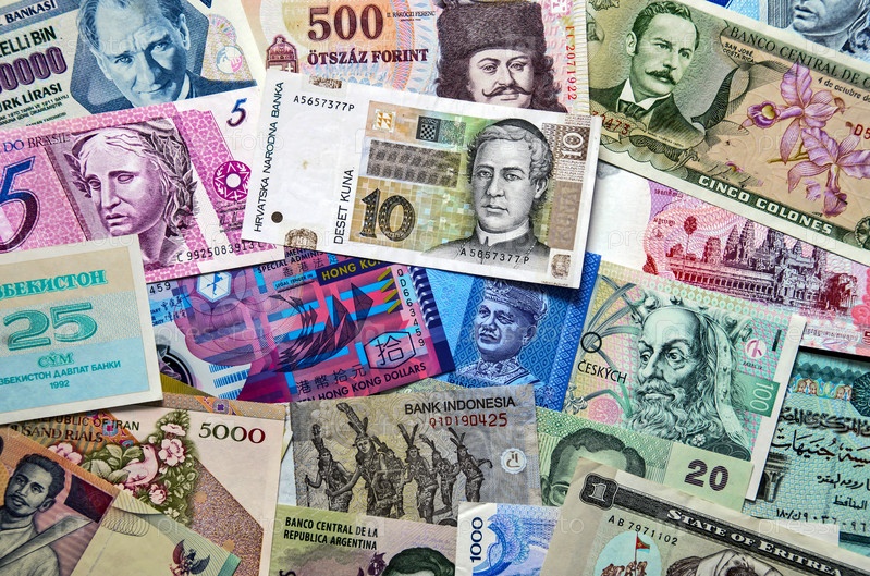 Коллаж и фон мировых банкнот