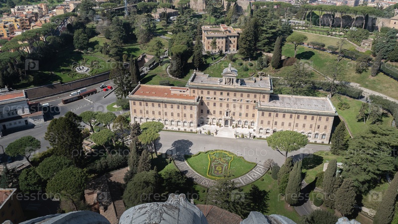 Вид с воздуха на здания и улицы с крыши Папской базилики Святого Петра в Ватикане, Италия