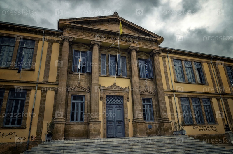 Никосия, Кипр - 27 марта 2017 г.: Историческая школа Фанеромени на площади Фанеромени в старом городе в пределах венецианских стен в Никосии на Кипре