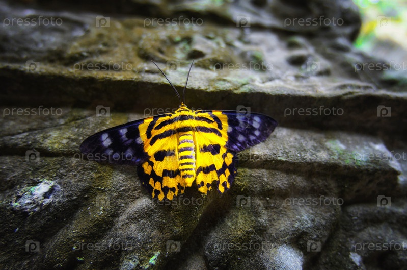 Бабочка уникального желто-черного цвета сидела на прочном столбе