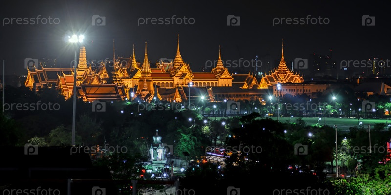 Хороший снимок достопримечательности королевского дворца или Большого дворца, или Ват Пра Кео, или изумрудного храма Будды в сумерках в самом сердце Бангкока, Таиланд,