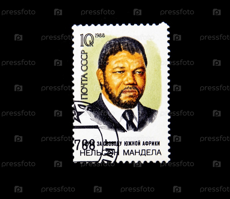 РОССИЯ - ОК 1988: Марка, напечатанная в России, показывает портрет Нельсона Манделы.Южноафриканский лидер против апартеида, около 1988