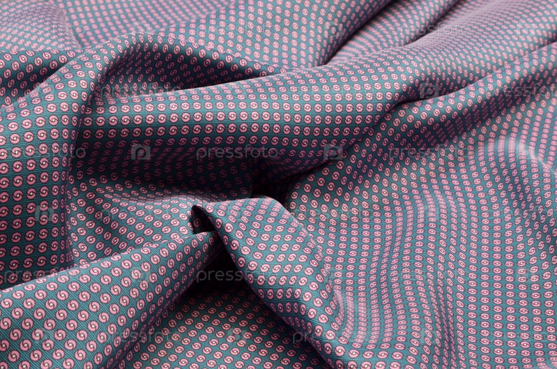 Шелковая ткань, розовый горошек на бирюзовом