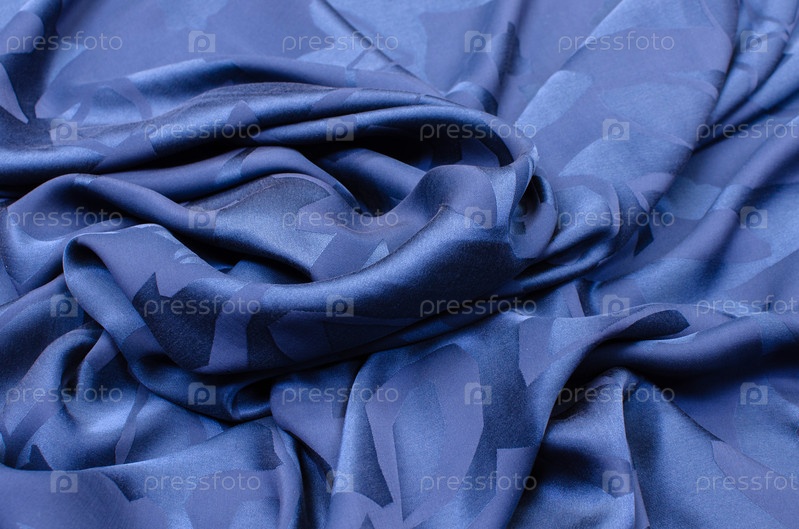 Ткань хлопчатобумажная атласная голубого цвета с орнаментом