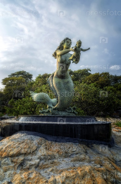 Статуя русалки и дети на пляже Сай Кео на острове Самед, провинция Районг, Таиланд, 18 октября 2015 года