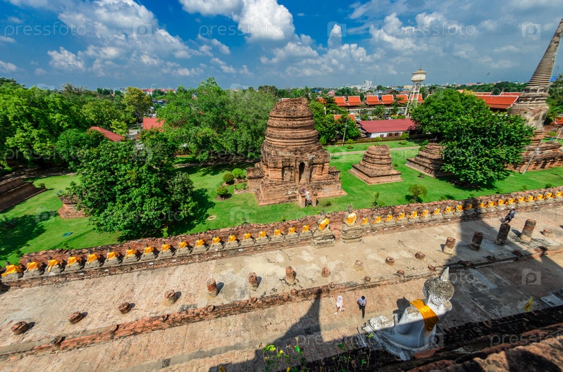 Аюттхая, Таиланд - 22 октября 2017 г.: Пагода в Ват Яй Чаймонгкол или Ват Яй Чай Монгхон, храм в историческом парке Аюттхая, Аюттхая, Таиланд. Всемирное наследие ЮНЕСКО. крупная туристическая достопримечательность