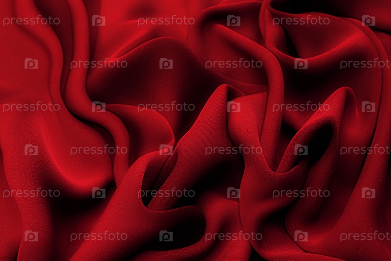 Крупный план натуральной красной или розовой ткани или ткани того же цвета. Текстура ткани из натурального хлопка, шелка или шерсти или льняного текстильного материала. Красный холст фон