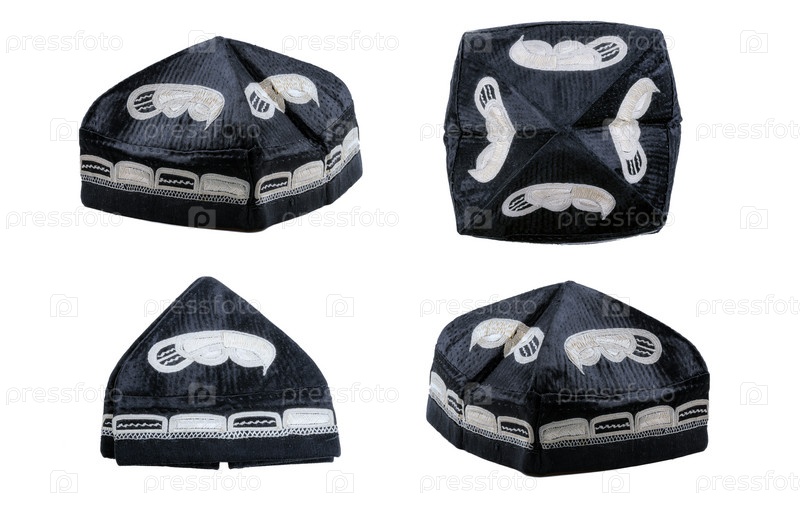 Узбекская тюбетейка в четырех ракурсах, изолированная на белом фоне