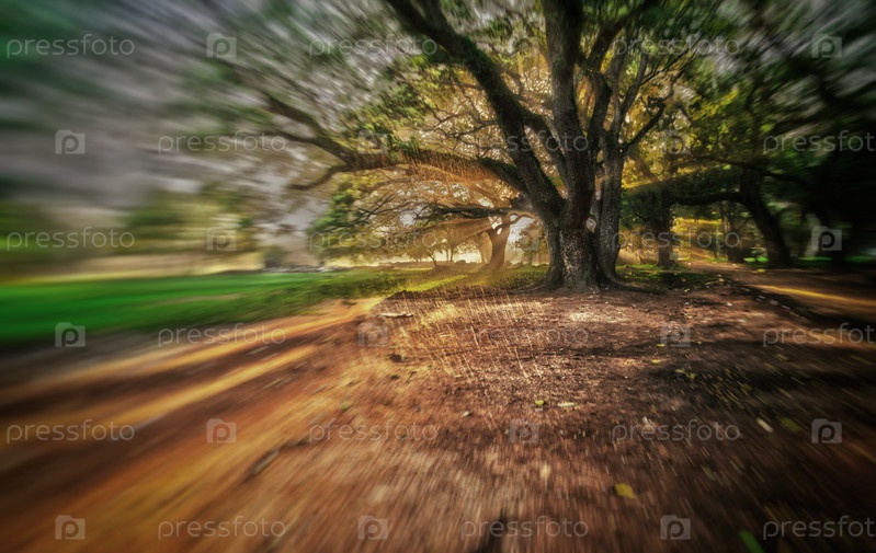 Закат, дерево и дождь в Камбодже