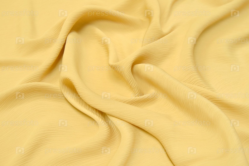 Крупный план натуральной оранжевой или желтой ткани или ткани того же цвета. Текстура ткани из натурального хлопка, шелка или шерсти или льняного текстильного материала. Желтый фон холста