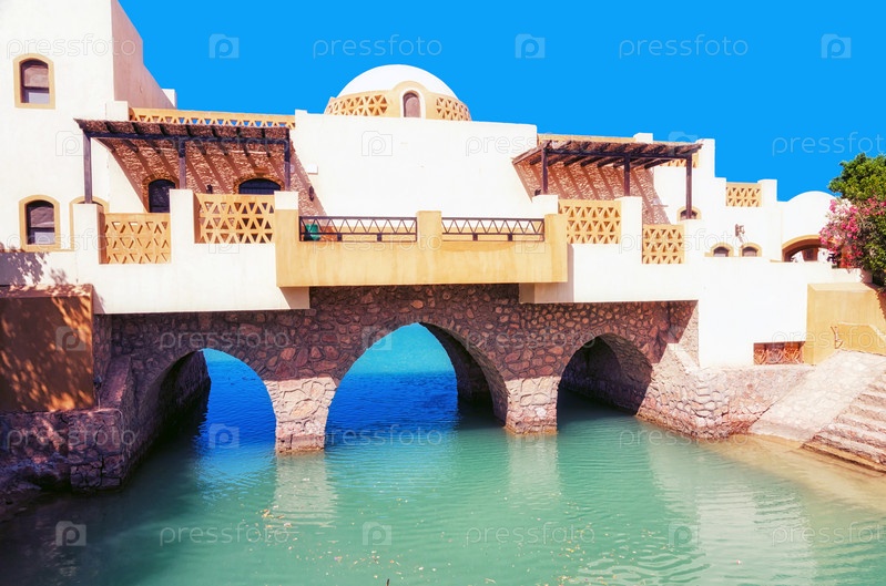 Каналы, здания и курортное оборудование на курорте Эль-Гуна. Египет, Северная Африка