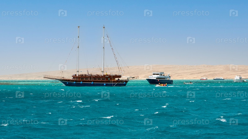 Круизные яхты в летнее время в Красном море, Египет недалеко от Хургады