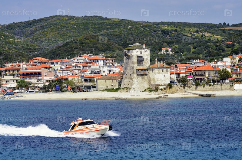 Исторический форт в порту и городе Урануполис, место входа в монастыри горы Афон, Халкидики, Греция