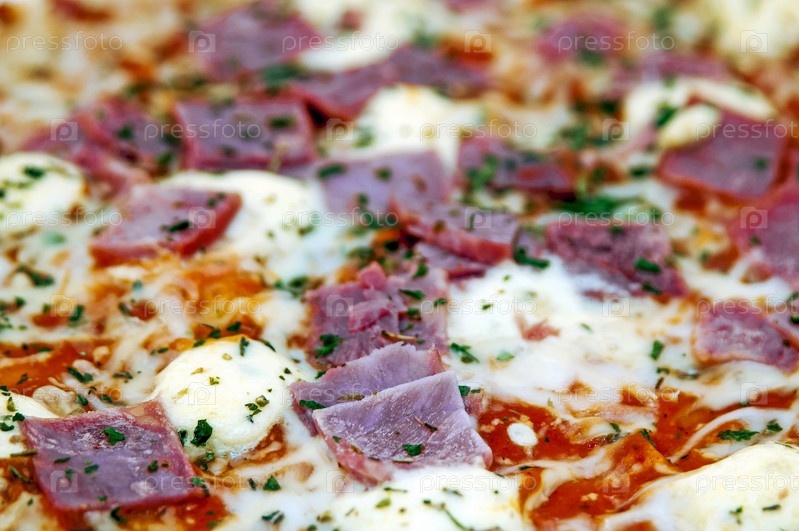 Вяленая пармская ветчина на Традиционной итальянской пицце с сыром моцарелла и помидорами на основе из толстого теста