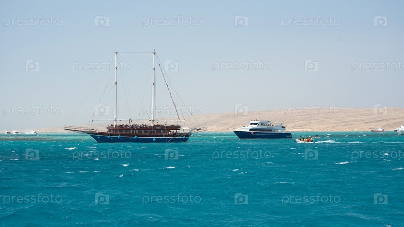 Круизные яхты в летнее время в Красном море, Египет недалеко от Хургады