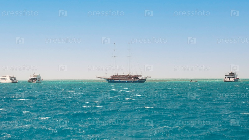 Круизные яхты в летнее время в Красном море, Египет недалеко от Хургады